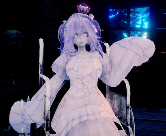 Lavenriel (ラベンダ, Lavender) is a ghost of a princess trapped inside a porcelain doll. She spends her time sleeping, relaxing in her garden, or playing. She loves to experience living through playing life sims. She plays a variety of games including rpgs, puzzle games, and atmospheric games. Her favorite video game franchises are fallout, dragon quest, harvest moon, and saints row. Laven is disabled and can usually be seen in her wheelchair.